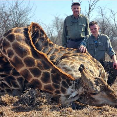 We are excited to offer this to you all again and hope that some of you will jump on this opportunity! We are incredibly passionate about our black giraffe bulls over here at Bayly Sippel Safaris and we have some great black bulls on quota for our 2026 season. We don't always have the same number of bulls available every year as these kinds of bulls don't just grow on trees. Black Giraffe bulls attain this unique coloration through a combination of age and genetics. Some Giraffe - no matter how old they may get - will never go black, and this is due purely to theirs genetics. Due to this fact black Giraffe are relatively uncommon. The hunt will take place in the Limpopo province of South Africa at either one of our home bases or at a reserve where we know of a black bull. Both home bases have a wealth of other plains game hunting available should you wish to hunt some other animals on safari! Its always awe inspiring to see such a large animal up close...and even more so when you look at your tiny knife and wonder where to start cutting!
