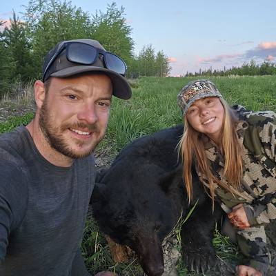 We hunt Black Bears in the spring using strictly spot-and-stalk methods—there is absolutely no baiting. Our area supports a healthy and abundant Black Bear population, with roughly 30% color-phase bears. These bears range in color from jet black and dark brown to cinnamon and even blonde.