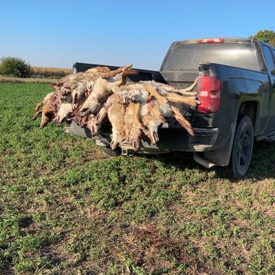 Furbearers(like coyote, fox, raccoon, bobcat) can be hunted with a hunting license (bobcat requires a special tag and is limited to certain zones in southern Iowa).