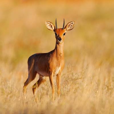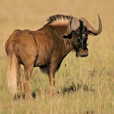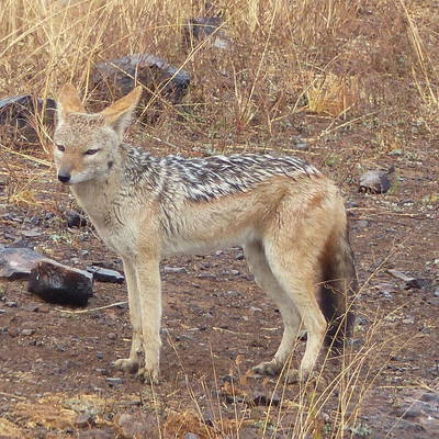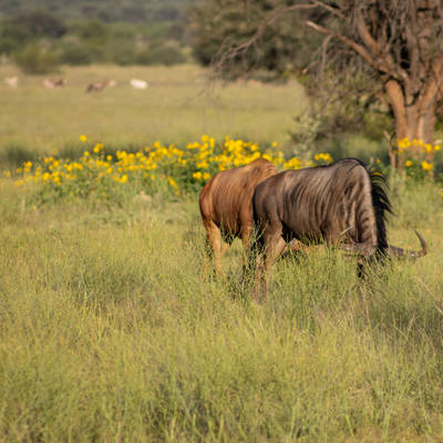 Schwarzrücken-Schakal, Streifengnu, Kronenducker, Springbock, Kudu