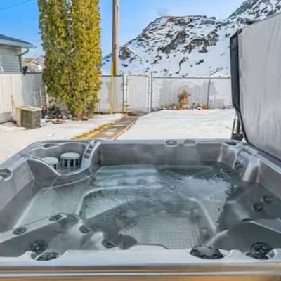 The lodge features a warm and welcoming atmosphere, modern amenities, and plenty of room to unwind. One of the highlights is the outdoor hot tub, perfect for soaking sore muscles at the end of the day. Be sure to bring your bathing suit.