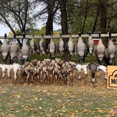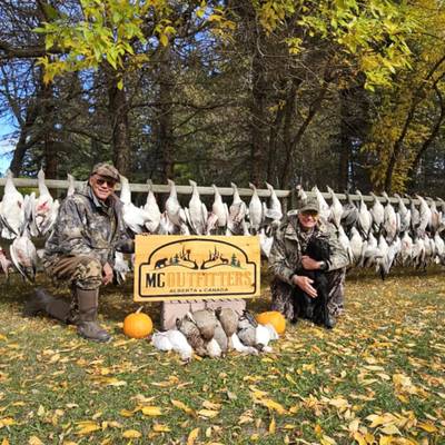 We are in one of the first agricultural areas that migrating geese and ducks encounter on their annual journey from Northern nesting grounds to southern wintering areas. Combine this with thousands of local birds and your opportunities are endless. Our area boasts ducks like Mallards, pintails with bonuses of wigon’s, blue and green winged teal. Greater Canada geese, lesser with bonuses of cacklers, speckle belly and snows. We use a variety of full body, silhouette and moving decoys to ensuring we have what it takes to get birds on the ground for our hunters. Our hunts are conducted from willow, bale, box or layout blinds. With both us and/or our professional Molt gear guide in the blind with you to call and retrieve birds We pride ourselves in having a local family/staff business, we run with professional and friendly people, we demand respect and care for both our private and local property we gain access to with our waterfowl hunts. This is the best place to find a Canada waterfowl experience of a lifetime. Whichever hunt package you choose each hunter has a possession limit of a 3-day bag limit. This includes 24 geese, 24 ducks and 50 snow geese. GROUP RATES AVAILABLE PLEASE CONTACT US FOR INFORMATION