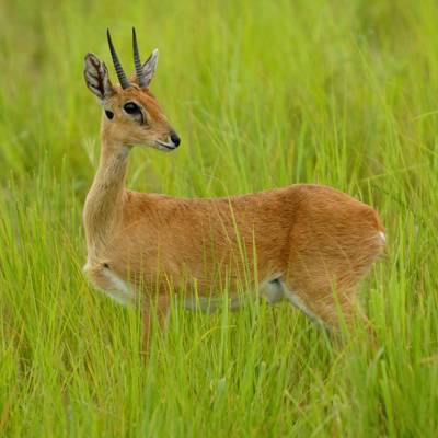 Especially abundant in the area, are the larger antelopes such as Lord Derby Eland, Western Roan and Sing-Sing Waterbuck. Among the smaller antelopes the western bushbuck, cob, reedbucks and hartebeest are well represented. Lions are present the whole year and the territory has enough resources for a permanent population. Herds of elephants pass and stay frequently in the zone. The river contains a large population of hippos and western buffalos thrive in several parts of the area.