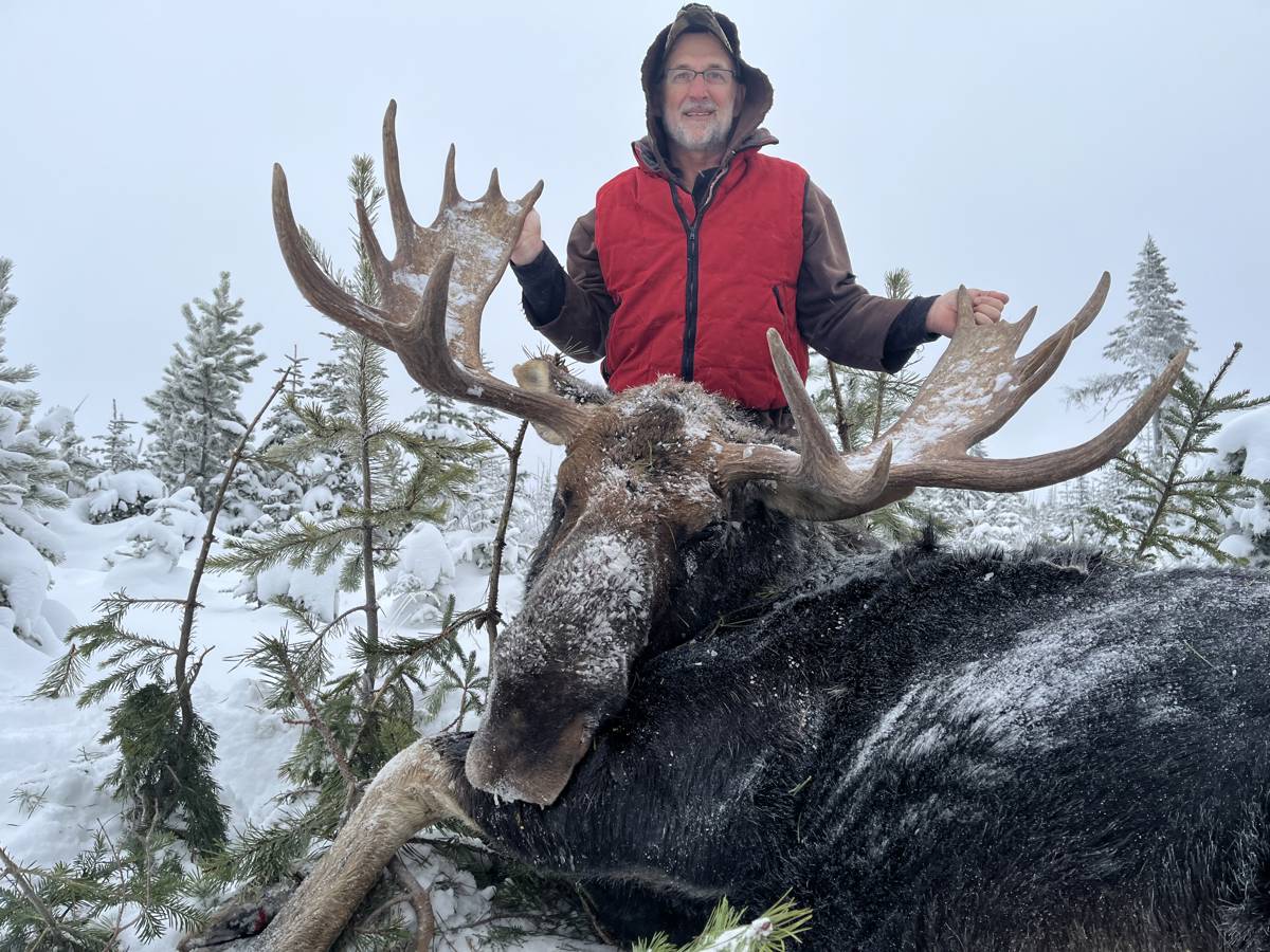 Our moose/whitetail combo hunts take place during the peak of the whitetail rut, while moose are post-rut. Moose hunting during this period is very active and physically demanding. We hunt from a mix of ladder stands, ground blinds, and natural blinds in areas where moose and deer habitat overlaps. Our strategy is to prioritize the deer hunt early in the week and harvest a whitetail as efficiently as possible, which allows us to dedicate more time and energy to the moose hunt. We rely heavily on fresh snowfall to track moose movement and focus our efforts on key feeding areas. With a seven-day window to successfully harvest two different species, minimizing limitations—whether from weather or physical challenges—is critical. Every available day counts, and maximizing effective hunting time is essential to the success of both hunts.