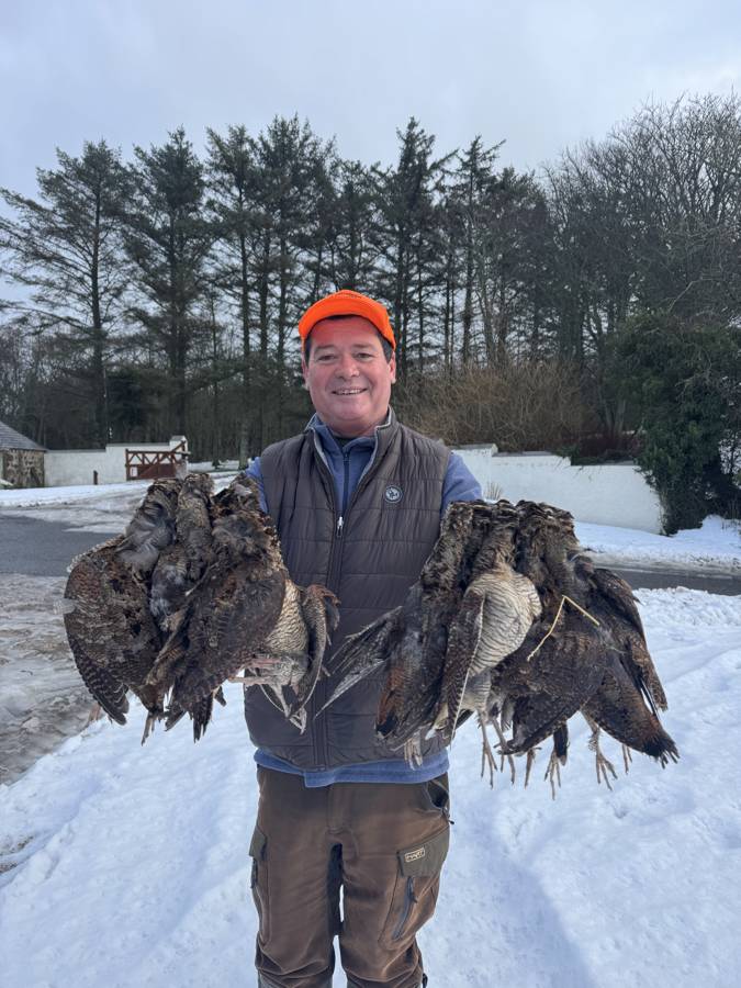 Woodcock Shooting in Scotland is one of the most challenging activities offered by Sercout Wild Harvest and it is best enjoyed by experienced hunters. Often found in woods and wet grounds, they feed nocturnally around streams, pasture fields and on boggy ground, but prefer dense cover during the day. The resident population in Britain is increased by a large over-wintering migrant population. It is thought by some that the bulk of this migration coincides with the first full moon in November. Woodcocks rank amid the most fascinating game birds in the world, as they migrate all across Europe and the surrounding areas.