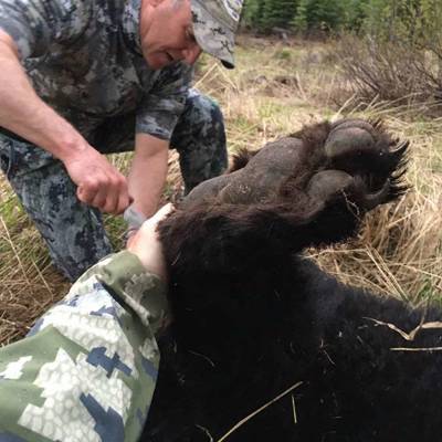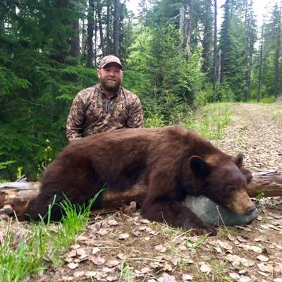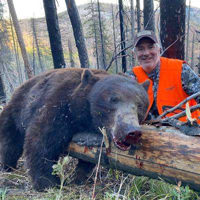 This northwest corner of Montana has some of the best black bear populations in the lower forty-eight states and opportunities for different color phases from jet black to cinnamon to chocolate are common. We have over 500 square miles of territory here on the Kootenai National Forest in our concession. All bear hunts are 100% fair chase which means no baiting and no running with dogs. The bears we harvest range from five to six and half feet from nose to tail and weigh an average of 200-lbs. Spring bear hunts are most popular and we like to hit the ground and put in the miles. We use all methods of traditional spot and stalk techniques and generally in the spring the bears are found at lower elevations. Upon leaving their dens they make for grass and clover which is their primary food source early in the year. This makes tracking sign a little easier since often times it puts them on logging roads, open meadows, and logged areas.