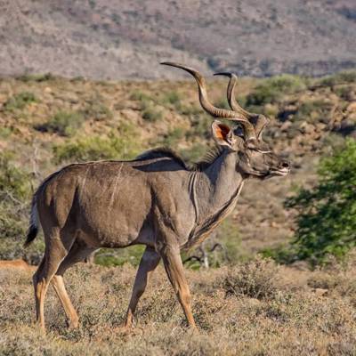 Here we have several very large concessions where you are accommodated in either very comfortable thatched-style bush camps or in the original ranch style homesteads, some well over 100 years old. Typical South African dishes are served with outstanding locally produced wines. This area consists of a wide variety of habitats, varying from coastal brush and valleys to the Winterberg Mountain range 7000ft up in some places. Species typical to the region are Blue Duiker, Grysbuck, Bushpig, Caracal, Oribi, Mountain Reedbuck, Vaal Rhebuck, Cape Bushbuck, and Eastern Cape Kudu, White Springbuck, Black Springbuck, Common Springbuck, White Blesbuck, Nyala, Hartebeest, Red Lechwe amongst many others.