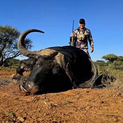 Hunting may commence half an hour before sunrise and ends half an hour after sunset. Our day starts just before sunrise with a light breakfast and as soon as the light is strong enough we climb onto the hunting vehicle and start searching for tracks and any signs of the animals on your wish list. We start from one point and work our way to another. As soon as we have found fresh tracks or we have spotted animals in the distance we start our stalk. We will also check all the waterholes during the course of the day. The day is split up into two sessions, the morning session ends with brunch at the lodge and a short break before we take off for the afternoon hunting session.