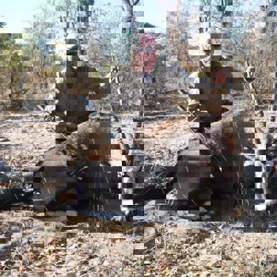 Hunters camp: Our hunters camp is a permanent setup about 300 yds from the main buildings. We have a hunters bungalow with 2 rooms sleeping 2 persons each. Bathroom with hot water and flush toilet facilities are shared. The buildings are brick constructions. Only 12V lighting is available at the camp. The camp is also equipped with a kitchen with fridge and all necessary utensils.