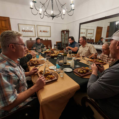 Experience the charm of this historic ranch in a setting of timeless comfort & personalized service supervised by it's owners. San Martin Lodge accommodations are world class. Six spacious bedrooms with private bathroom, Wi-Fi Internet, Direct-TV, cozy living rooms with fireplace, outside BBQ areas, day long beverage, bar and more. You will enjoy a variety of dishes each prepared by our chefs to greet you with the best dining experience. We take care of each and every guest as a unique individual providing sincere service making our guest feel genuinely cared for. Non hunting companions will also enjoy the trip of their lifetime. Always assisted by our bilingual staff along the owners itself. San Martin Lodge takes care of every aspect of the hunting trip, and the gastronomy is one of them. Excellent food & beverages are served in time to recover all the energy invested in the field.  Enjoy a hosted trip with us, the owners.