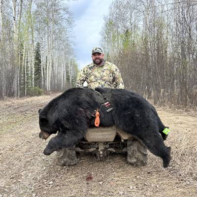This hunt takes place in northern Alberta north and south of high level. It’s 8 hunters in camp per week. It's 5 full hunting days. Are hunts are in the evening you can count on sitting 5-7hours a night unless you harvest your animal earlier. Three home cooked meals provide daily as well as snacks,baking and soft drinks. During our 2025 hunts we had a 100percent success rate on first bear and 75 percent on second bear. High success rate on p&y bears with b&c bears. Every one has wolf tags included with their license this is just a pure luck of the draw if one comes into a bait. All bait sites are accessed by atv boat or truck. The stands are metal ladder stands or ground blinds on hunters request. All tents are framed with wood floors and single beds, wood stoves, Full cell service well in camp and at most baits. We also have a travel agent that works with you to get you best rate and make travel as easy as possible. We look forward to answering any questions you have about hunt!