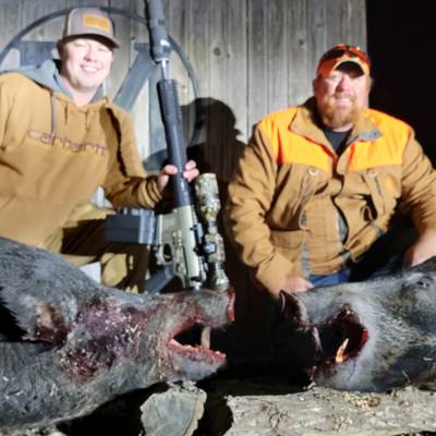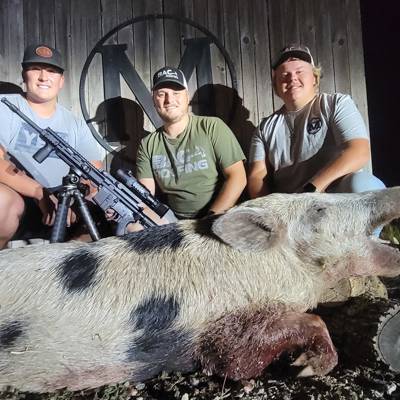 Fun starts the moment you Arrive at Tbe Circle M Lodge in Stratford Oklahoma , Day or night , we love to hunt hogs. No 2 hunts are ever the same, its always a new adventure!"We hunt hogs Early morning from blinds when feeders go off , then have a giant breakfast, and start some adventure in walk n stalk style. We traverse creeks canyons , heavy timber , open plains and valleys. After that come in for a great lunch to get you through the day and maybe a few margaritas on fajita Tuesdays!! Spend the next few hours on side x sides or jeeps making new trails and having fun testing your rifles at our shooting range, skeet machines are fun competition. A few hours before dark we will go back to stands and watch the wildlife come out like crazy!! Be patient and wait, the biggest hogs come out last. Let us quarter your killl and freeze it for you to take home . While we prep your meat go enjoy a drink at the open bar and the best Prime Steaks, Salmon , Lamb chops , Lobster and exotic meats prepared by our Master Chefs !! This hunt is more enjoyable as a group because with 10 or more you can book the whole lodge to yourselves, but we can still book you if you are a single or a couple of hunters. Send us a message and let's start planning your next adventure!!
