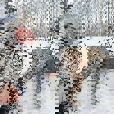 Охота осуществляется с подхода, загоном. При охоте на рысь нужны навыки езды на снегоходе. При их отсутствии проводим инструктаж и учим. При планировании данного вида охоты нужно понимать что зверь очень хитрый и быстрый. Закладывать нужно день приезда, день отъезда и минимум три дня охоты. На практике первый день ищется свежий след и распутывается, второй и третий дни обычно дальнейшее распутывание следа и после обнаружения зверя уже от обстоятельств на месте принимается решение о методе конечной добычи (подход либо загон). В сопровождении охотника будет 2-3 егеря. Вся необходимая техника и амуниция есть на базе. Предпочтительно гладкоствольное оружие и патроны картечь 8мм).