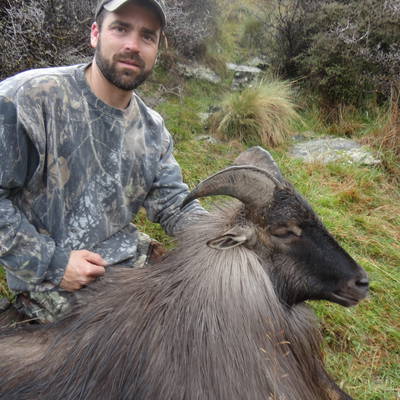 This fabulous traditional free range wilderness hunt over 5 days takes place high up the New Zealand's Southern Alps. Access to our hunting area is by 4X4 or helicopter (helicopter option will be an extra cost if this option is taken). We set up a base camp high up in an alpine basin or in a mountain hut and from there hunt our Himalayan Tahr on foot . We may also venture further from our base camp and fly camp if the weather conditions are ok. This is always a really good option and you will see lots of good bulls. Our success rate for this hunt is up in the high 90's and trophy quality is silver or. gold medal.