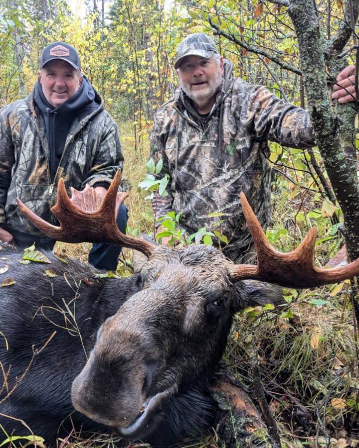 Our moose hunts are highly sought after. With virtually a 100% fill rate over multiple decades, we foster good marksmanship and humane harvesting. Each guided hunt provides one guide per two hunters, with opportunities for both bow hunting and rifle hunting. There are many different hunting options available for our hunters, including quads, trucks, walking, and/or stand hunting are all possible, depending on the time of year and the weather patterns. With a healthy moose population in two of our zones, our rut hunts promise to give you an exciting chance at a 30-40” bull. 2025 hunts had a slightly lower success rate than years in the past, with 75% of our hunters filling their tags. 2 Archery hunts available Rut: 2 hunts available in prime agricultural area Oct 1-6 (WMU 523) Sept 20 to 25- WMU 544 Bush area (larger moose but harder hunt, must be in decent physical shape.) 2 available. Oct 1- 6- 2 prime agricultural hunting area (WMU 523) available November:1-6 prime November hunting