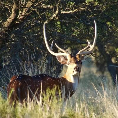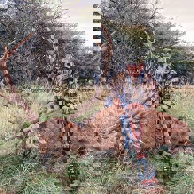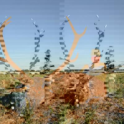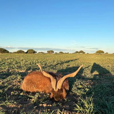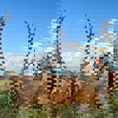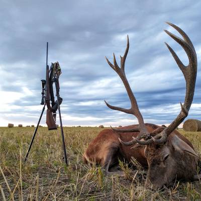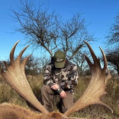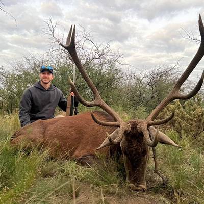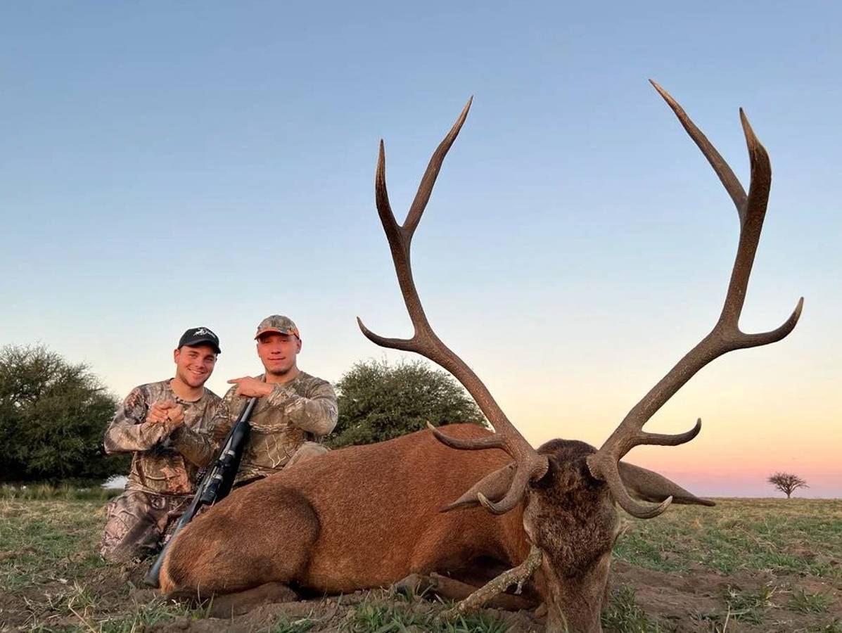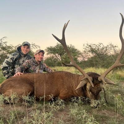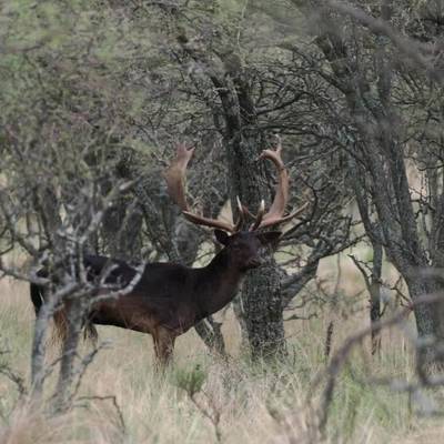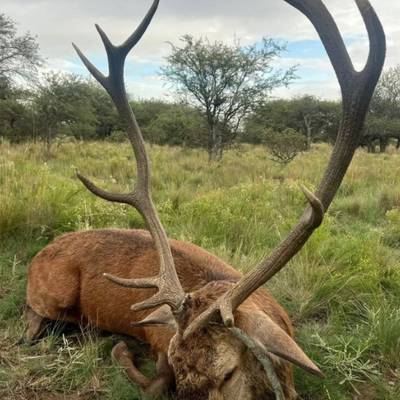 6 night / 5 day Free-range Red stag hunt. Hunting takes place across over 40,000 acres of free-range land in La Pampa, Argentina. The primary method is spot and stalk hunting on foot during the rut (March–April). Each hunter is guided by an experienced professional, planning the best approach and reading the terrain together to locate the ideal stag. This combination of field expertise and strategic movement makes every day an effective and thrilling experience. No size limit on trophy stag, hunters can expect 230-300" range. It's a spot and stalk hunt chasing roaring stags with shots between 50-150 yards.