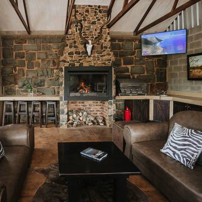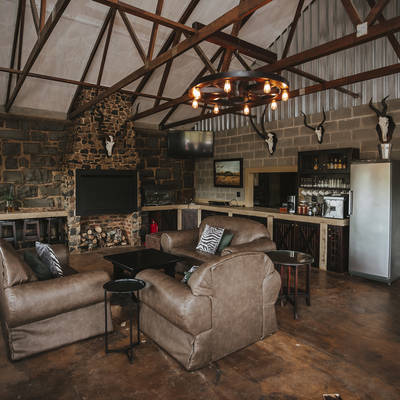 The lodge features a dining, lounge, and entertainment area, complemented by a refreshing pool, a spacious deck, and a fire-heated hot tub—all set against stunning natural vistas. In the evenings, guests can gather at the outdoor boma with its fire pit and comfortable seating, ideal for stargazing under the African sky.
