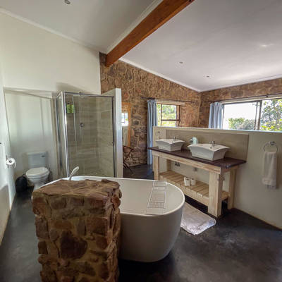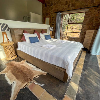 Our guests will enjoy the pleasure of staying in our Farmhouse which boasts 5 luxury ensuite bedrooms with modern African design and a refreshing splash pool. After a day of hunting, guests can enjoy gathering around the camp fire. Our in-house chef will prepare delicious, locally-sourced meals, including fresh game meat harvested on the Estate. Meals will be accompanied by nice South African wines, or other beverages of your choice, which are included in your daily rate. There is also a daily cleaning service and laundry will be done as needed.