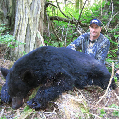 Spring Black Bear hunts are 5 days long, with a travel day on either end. They can be arranged to be '1 on 1' - one hunter per 1 guide, or '2 on 1' - 2 hunters per 1 guide ($4500 per hunter).