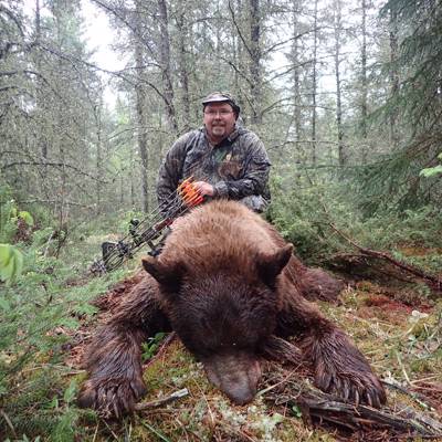 The quality of bear is seemingly endless, and it is so exciting to see all the color phase here as well. We put a lot of time into baiting and scouting so you will always be on productive baits. Bear hunts are only in Grand rapids. Hunters have an excellent opportunity at a Pope and Young or Boone and Crockett bear. Hunts are from pre-baited stands. Most stand site are fixed position stands or ladder stands with 10-20 yard shot distances. Baited stands are strategically placed in remote areas where bear traffic runs high. Transportation and access to stand locations is provided by any combination of ATV’s, Side by Side’s, Argo or 4WD vehicles. Depending on your stand location you may only travel a short distance on up to 6-8 miles. Walking distance to your stand location typically ranges 10-50 yards. Non-hunters welcome to accompany you for $750.The hunt starts on a Sunday and runs until Friday, with Sunday being arrival and departure on Saturday. You provide your own meals. Please inquire for available dates.