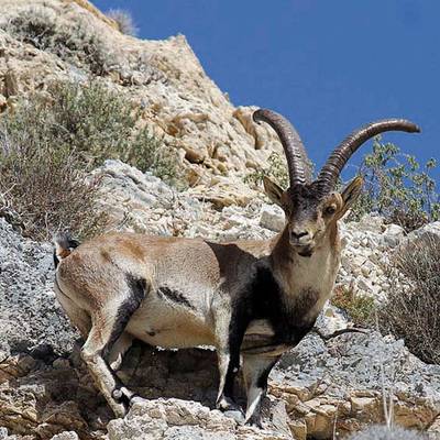 The Ronda Ibex is the smallest of the four subspecies. The horns grow straight up with a small angle at the tip, having lighter color skin than the others.