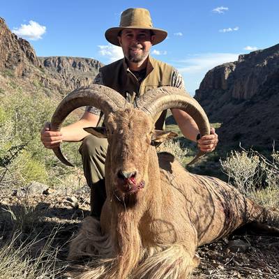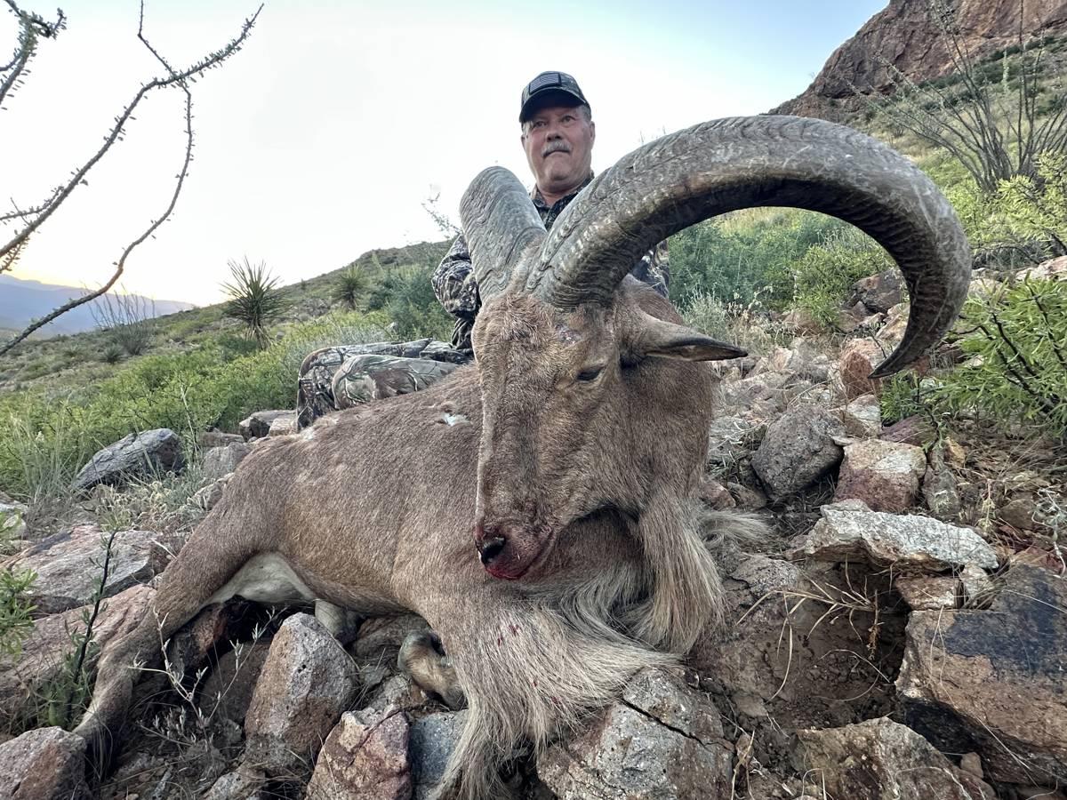 - We offer free range aoudad hunts in the Chinati mountains of far west Texas. These are 4-day hunts that are conducted off of horseback. This is extremely rugged and unforgiving terrain that we hunt in. We offer lodging and meals on the ranch. We conduct our aoudad hunts from mid-September thru mid-November during the rut. We can accommodate 1-2 hunters per hunt.