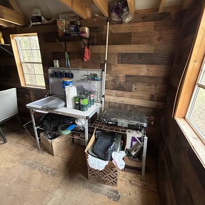 - My lodging is not high-end. It’s basically a permanent spike camp/glorified camping with heat, gas cookstove, and a gas grill outside, with the basics and you feel like you’re out in rugged deer hunting country.