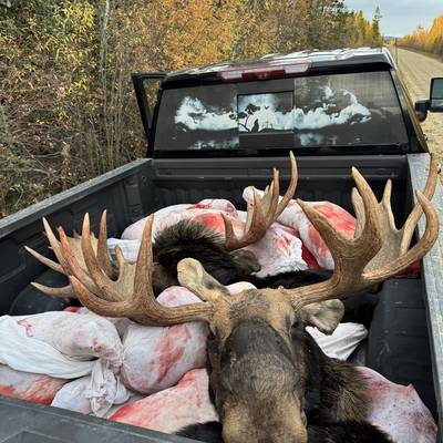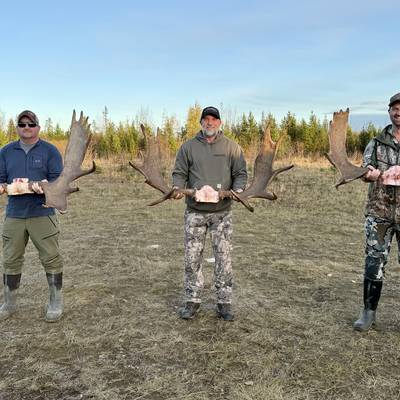 This hunt is based out of an Outfitter Tent Camp at a remote location in West Central Alberta Near Hinton. Comments from previous guest referred to never seeing another hunter the entire hunt. Success rates are high, 85%+. hunt hard you will have a chance at a Legal Bull, with and average size 45-50" plentiful. Last year we were 3 for 3. These the only 3 Outfitter Moose tags available in this hunting area. We have Stands statically place for those who don't mind a few hours in a comfortable spot that pays big dividends. We also have spots that are more difficult to access where we know there is always a Trophy sized Bull laying claim to his favorite piece of Rutting season real-estate. We can Taylor this hunt to any Hunters abilities and preferences. The hunting area has diversified Terrain from level cutlines and Cut-blocks to River Ridges, something for everyone. Outfitter tents are very comfortable, heated with Wood burning and Propane heaters, the dining Tent is set up with Fridges/Coffee/Snacks Etc. An enclosed Heated Wash & Shower Trailer makes for a very comfortable clean up after a long day of hunting. With hunting stands statically placed make for an excellent opportunity to bag a trophy size Bull in the 50 inch plus range, if you have the patience these Stands will pay big dividends. If you preferer battling the River Ridges into very remote areas to find a trophy Bull the opportunities are endless. This huge hunting area has several Rivers, feeder Creeks and lakes creating a top notch trophy hunting area. Our knowledgeable Guides will look after all aspects of the hunt to match your preferences.