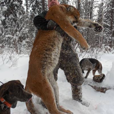 Cougar which are also known as a Mountain Lion or Puma mostly prey on deer, though they also eat smaller animals such as coyotes, porcupines, and raccoons. A beautiful and powerful predator, they usually hunt at night or during the hours before dawn and dusk. Cougar hunts start in November and run to March 31.