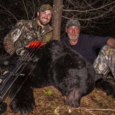 Spring Black Bear hunts are conducted between May 1 – June 15. At that time the pelts are in prime condition. Spring Black Bear hunts offer bowhunters incredible opportunities for a trophy animal. Our hunting territory is perfect for spot and stalk type hunting. Most bowhunters have several stalk opportunites daily.