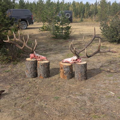 Beautiful remote hunting area with diversified Terrain from level to River Ridges, something for everyone's preference and abilities. Outfitter tents are very comfortable and heated, the dining Tent is set up with Fridges/Coffee/Snacks Etc. An enclosed Heated Wash & Shower Tent makes for a very comfortable clean up after a long day of hunting these allusive Bulls.. Several hunting stands statically placed are an excellent opportunity to bag a trophy size 6x6 Bull in the mid 300's, if you have the patience these Stands will pay big dividends. If you preferer battling the River Ridges into very remote areas to find the Herd Bull the opportunities are endless, in this huge hunting area there are several Rivers with feeder Creeks from all directions. Our excellent knowledgeable Guides will look after all aspects of the hunt to match your preferences.