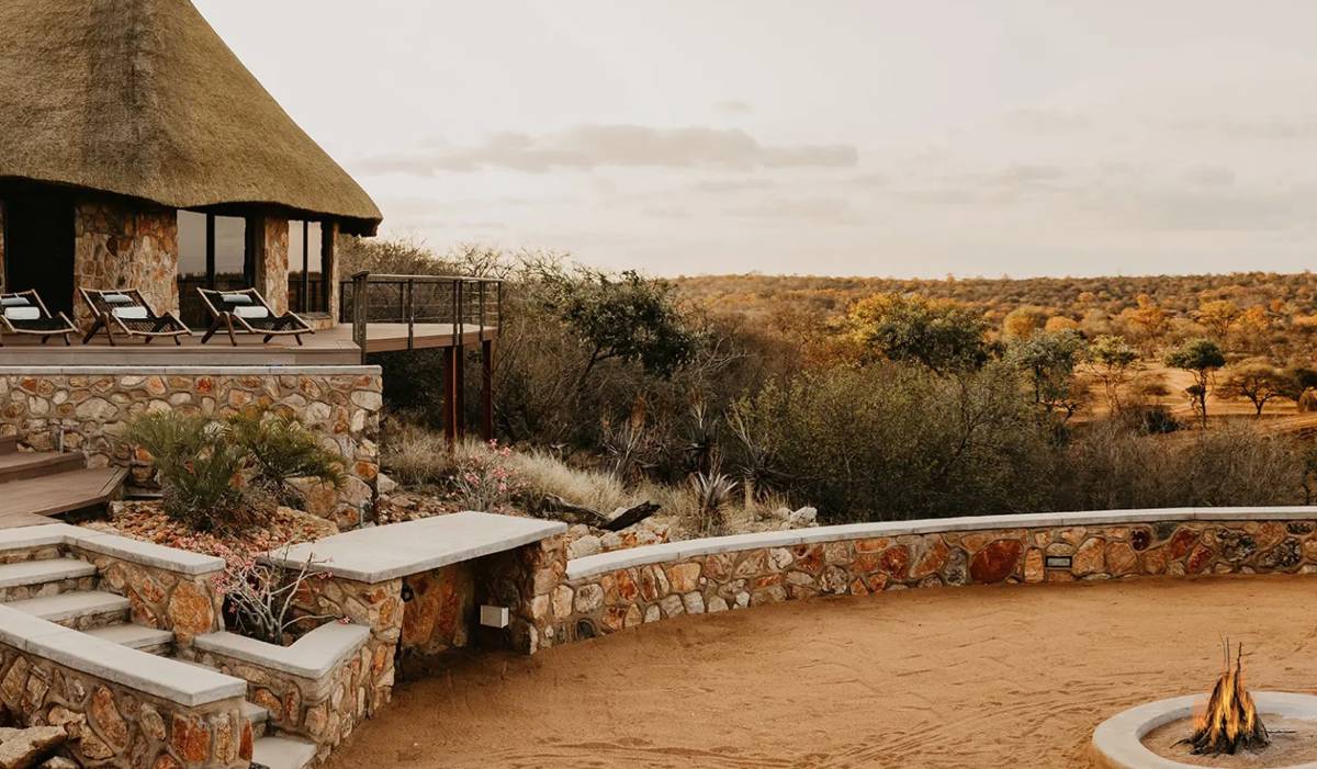 Nestled on a hill, overlooking a waterhole, frequently visited by a big variety of wildlife, our stone and thatch-roofed lodge sensibly integrates itself into the surrounding environment.